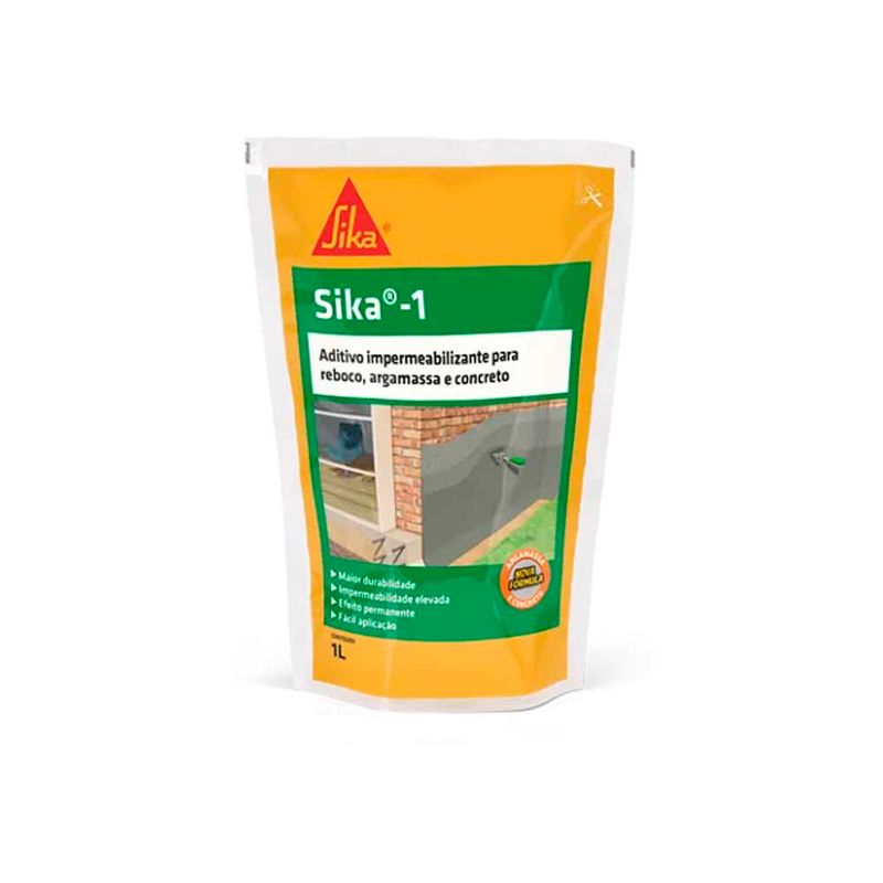 O Aditivo Impermeabilizante Sika-1 Sika é um impermeabilizante de pega normal para argamassa e concreto, que reage com o cimento durante o processo de hidratação, dando origem a substâncias minerais que bloqueiam a rede capilar, proporcionando elevada impermeabilidade à argamassa e concreto.