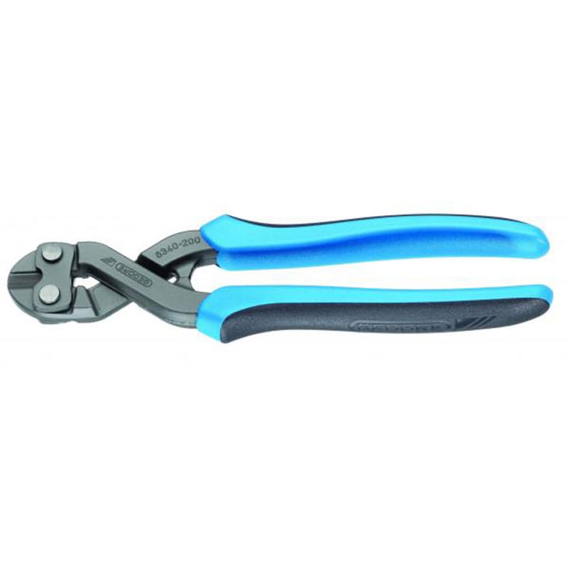 Corpo em aço Gedore-Vanadium e empunhadura ergonômica em polipropileno na cor azul padrão Gedore e elastômero termoplástico na cor preta. Acabamento com pintura em verniz transparente. Modelo compacto com elevada precisão e capacidade de corte, este alicate é 60% mais eficiente que os alicates de corte tradicionais. O que justifica este incrível ganho em sua performance é ser capaz de utilizar a área de corte próxima às juntas. Além disso, seu efeito de alavanca otimizado exige menor esforço do operador para executar o trabalho. Disponível em dois modelos: