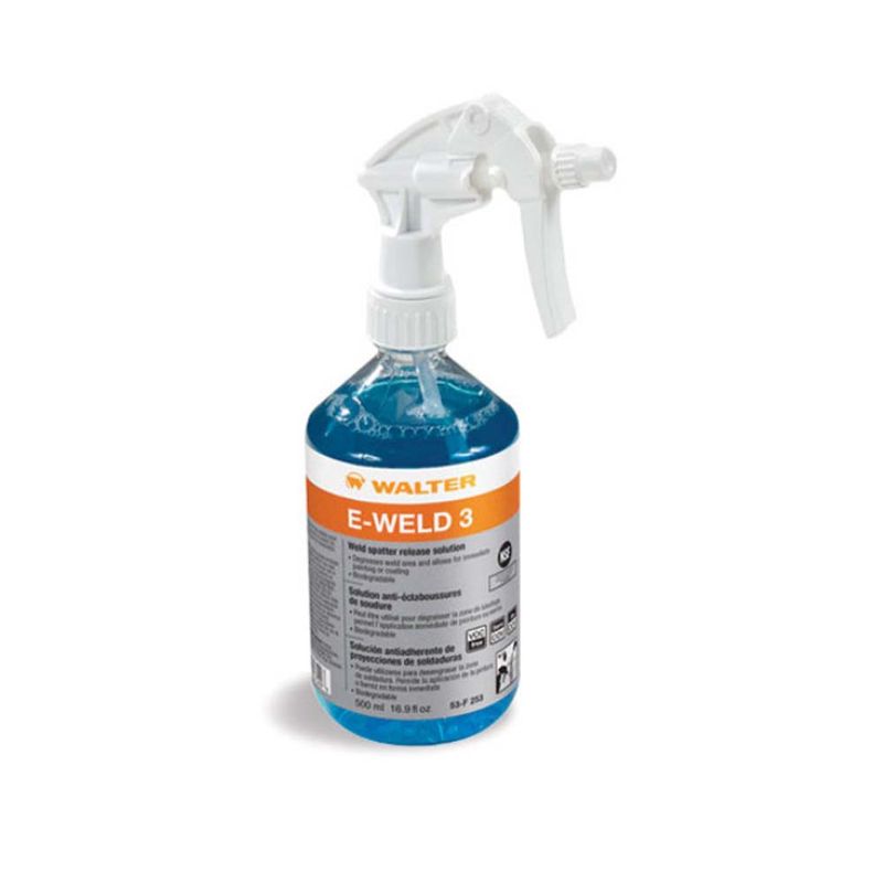 O Anti Respingo Walter E-Weld 3 com borrifador é formulado com ingredientes naturais e seguros, não contém solvente e silicone e não é inflamável. E-Weld 3 protege a peça da aderência de respingos em soldas e elimina os elevados custos gerados pela remoção desses respingos.