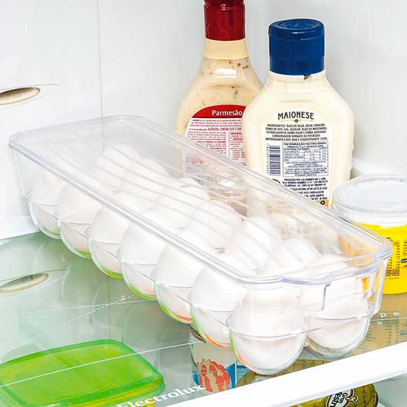 A Bandeja Acrílica para 14 Ovos Ordene garante o armazenamento correto dos ovos, possui tampa que permite empilhamento. Ideal para otimizar os espaços do refrigerador e evitar variações de temperatura, deixando sua vida muito mais prática.