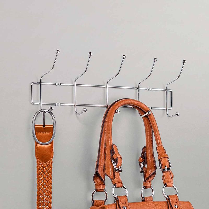 O Cabide de Metal Parede Ordene 5 Ganchos é ideal para pendurar roupas, mochilas, chapéus, etc. Pendurado com parafusos, possui ponta redonda que não danifica os tecidos. Seu design moderno faz com que o produto se adeque a qualquer ambiente.