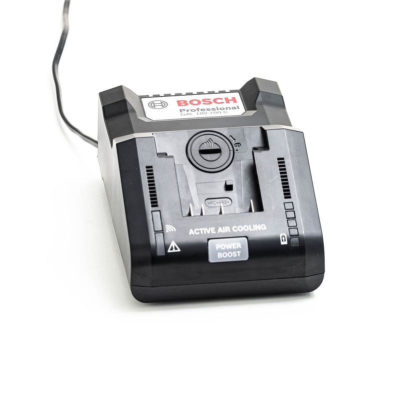 O Carregador Bosch Super Rápido 18V 16A GAL 18V-160 C, como o próprio nome indica, conta com excelente performance e potência, 18 volts e 16 amperes de capacidade de carga, sendo capaz de carregar 80% de uma bateria modelo “ProCORE18V 8.0Ah” em apenas 32 minutos. Equipada com o modo Power Boost que permite alternar entre dois modos: rápido (8A) e super rápido (16A), além de indicadores led e ventiladores internos para melhor controle da temperatura e início rápido de carregamento, é ideal para quem procura agilidade no dia a dia.