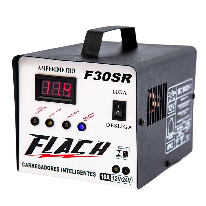 O Carregador de Bateria Flach F30-12/24 SR 12V e 24V é portátil e de fácil manuseio.