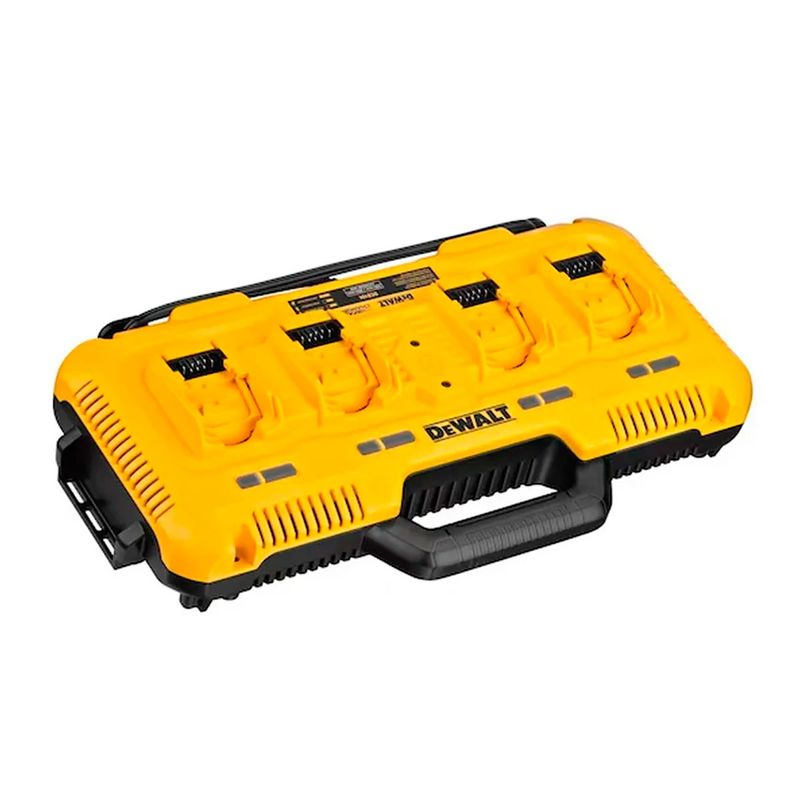 O Carregador Multi DCB104 da DeWalt é uma estação rápida de carregamento com 4 entradas simultâneas, compatível com baterias 12 V MAX, 20 V MAX e FLEXVOLT 20 V/60 V MAX. Ele carrega múltiplas baterias ao mesmo tempo com corrente de até 8 A por porta, recarregando um pack 4 Ah de 20 V em cerca de 40 min e um pack 6 Ah em 60 min. Ideal para oficinas e ambientes profissionais, possui design compacto, sistema de resfriamento ativo e suportes para fixação na parede ou trilhos TOUGHsystem.