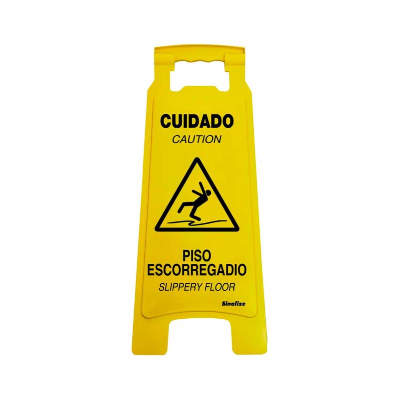 O Cavalete Amarelo Cuidado - Piso Escorregadio Sinalize é ideal para sinalizar lugares em que o piso está escorregadio, evitando assim, possíveis acidentes. Possui uma cor amarela vibrante que chama atenção de todos. Garantindo segurança e praticidade.