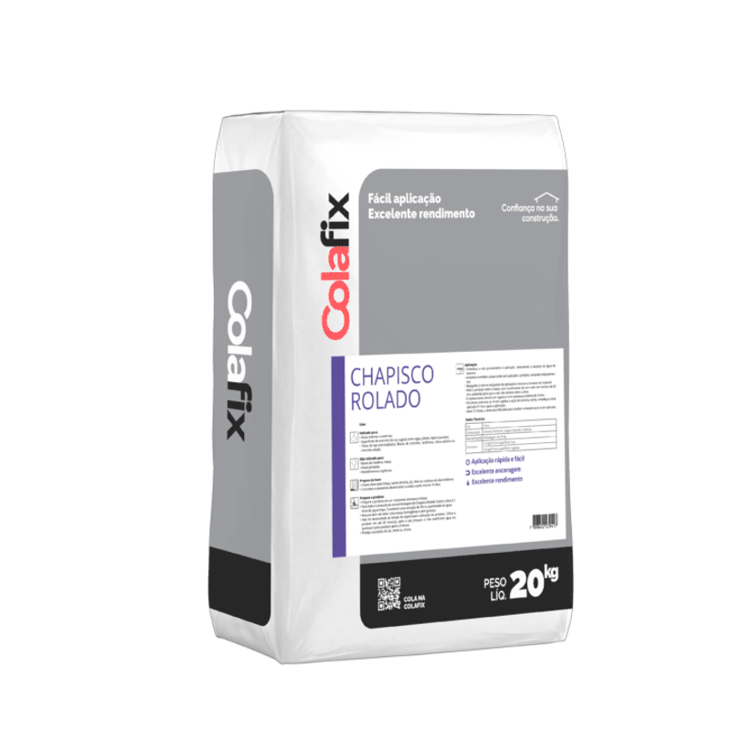 O Chapisco Rolado Colafix AC0011 Cinza, também conhecido como Super Chapisco, é uma argamassa especialmente desenvolvida para promover a aderência entre superfícies de concreto liso ou rugoso e revestimentos posteriores. Ideal para áreas internas e externas, sua aplicação é fácil e econômica, garantindo maior produtividade na obra.