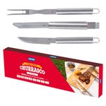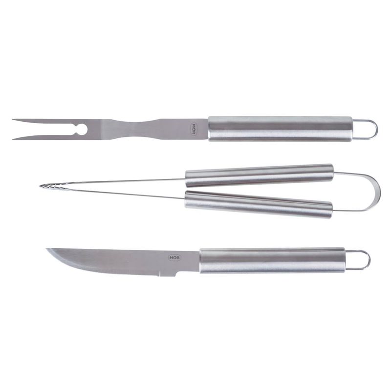 O Conjunto Churrasco Mor 3 Peças é perfeito para preparar e servir um churrasco delicioso com praticidade. Composto por faca, garfo e pegador, todos em aço inox resistente, garante cortes fáceis e precisos. Os cabos de madeira dão um toque rústico e oferecem conforto ao manusear. Um kit completo e durável, ideal para reunir família e amigos e aproveitar bons momentos ao redor da churrasqueira.