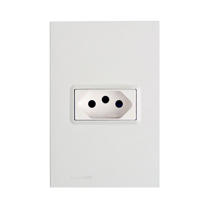 O Conjunto Montado 4X2 Tomada 2P+T 10A 250V Delta Mondo Soprano Branco é um equipamento seguro que evita choques por inserções parciais e atende às diretivas RoHS. Equipado com um sistema de fixação regulável, travamento dos módulos e suporte resistente, é produzido em material termoplástico de alta performance, com aditivo anti UV e anti-poeira que auxilia na conservação do produto.