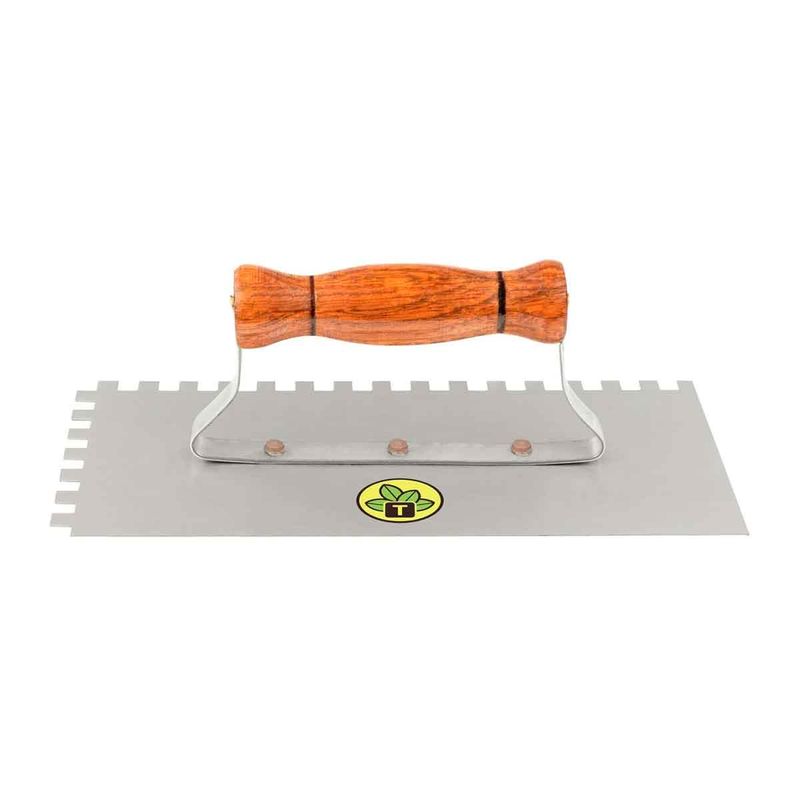 A Desempenadeira Lisa Dentada de Aço Tramontina 12 x 24cm é ideal para aplicação de argamassa e outros revestimentos. Com lâmina de aço resistente e dentes uniformes, facilita a distribuição precisa do material, garantindo um acabamento uniforme. O cabo ergonômico proporciona conforto e firmeza no manuseio, sendo uma escolha eficiente para profissionais da construção civil e reformas.