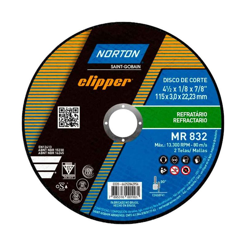 O Disco de Corte 180 X 3 X 22,23mm Norton Clipper é ideal para uso em mármores, ferro fundido cinzento, refratários, concreto, granito e metais não-ferrosos em geral. De excelente performance em trabalhos contínuos, composto por abrasivo, liga e fibra de vidro, é indicado para uso em esmerilhadeiras.