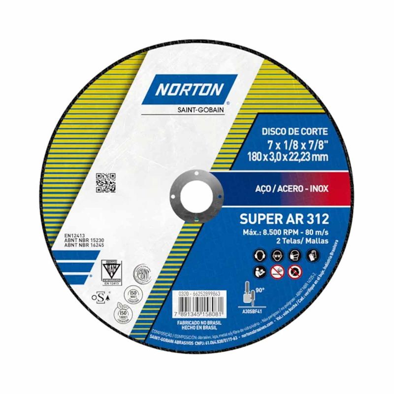 O Disco de Corte Norton AR 312 é indicado para montagens e manutenção industrial, manutenção pesada e indústrias em geral.