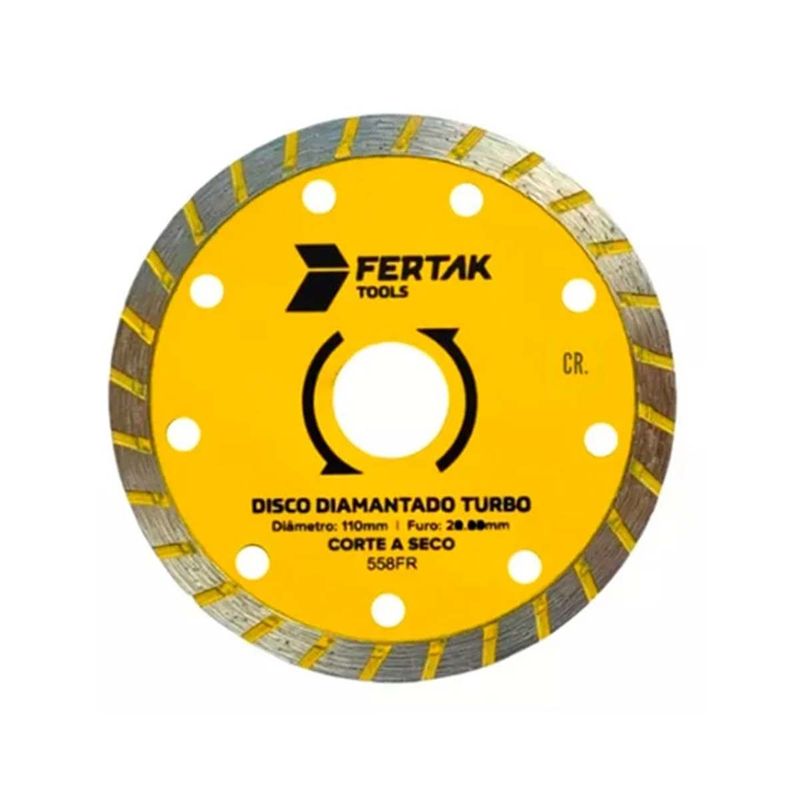 O Disco de Corte Diamantado Turbo Fertak 110 x 20mm oferece alta performance em cortes rápidos e precisos em materiais como cerâmica, concreto e pedras. Seu design turbo garante maior velocidade de corte e melhor refrigeração, ideal para trabalhos exigentes com excelente acabamento.