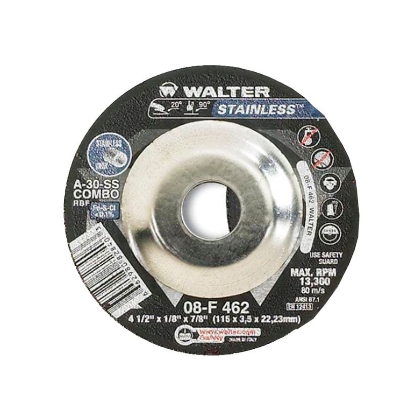 01 Disco de Corte e Desbaste 4.1/2" x 3,2 x 7/8 Walter 08F462 Inox combo