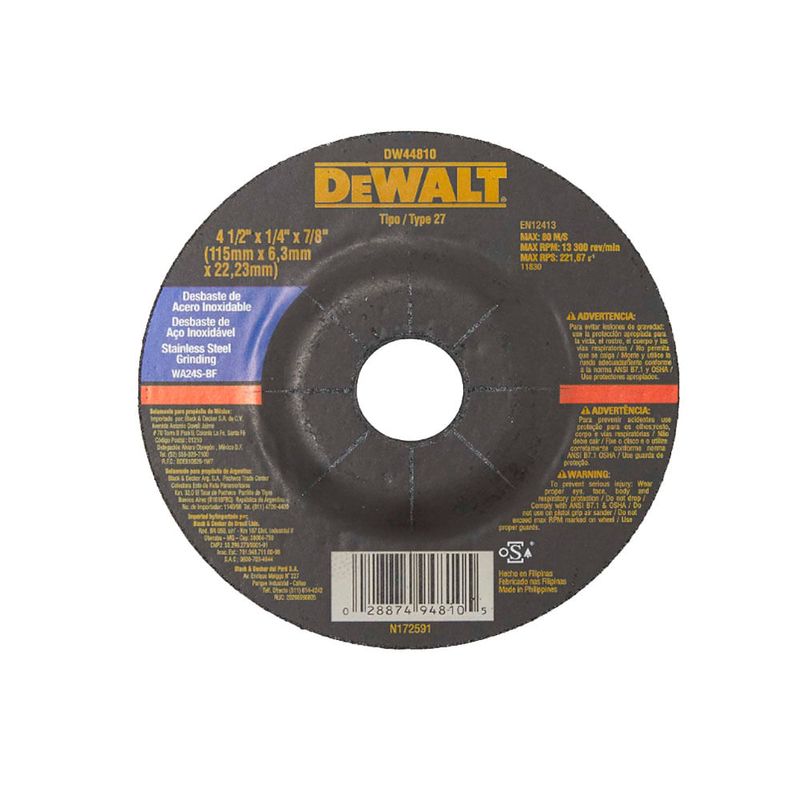 Disco de Desbaste 4.1/2" x 6,3 x 7/8" Dewalt DW44810 para inox