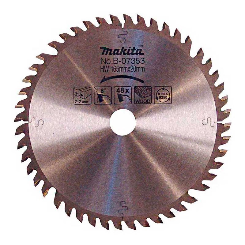 O Disco de Serra Circular 165 X 20 X 1,5 Makita B-07353 48 Dentes é para serra circular de trilho. Aplicação em madeira.