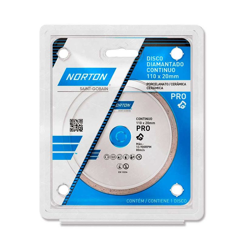 O Disco Diamantado 110 X 20mm Norton PRO Contínuo é indicado para operações que necessitam maior rendimento, sendo ideal para realizar o corte de pedras de alta dureza, cerâmicas, azulejos e porcelanatos. Composto por metal, diamante sintético e liga, pode ser utilizado tanto a úmido, quanto a seco em serras mármore e esmerilhadeiras.