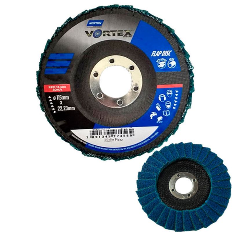 Disco Flap-Disc 4.1/2" Norton muito fino azul VORTEX 115 x 22mm