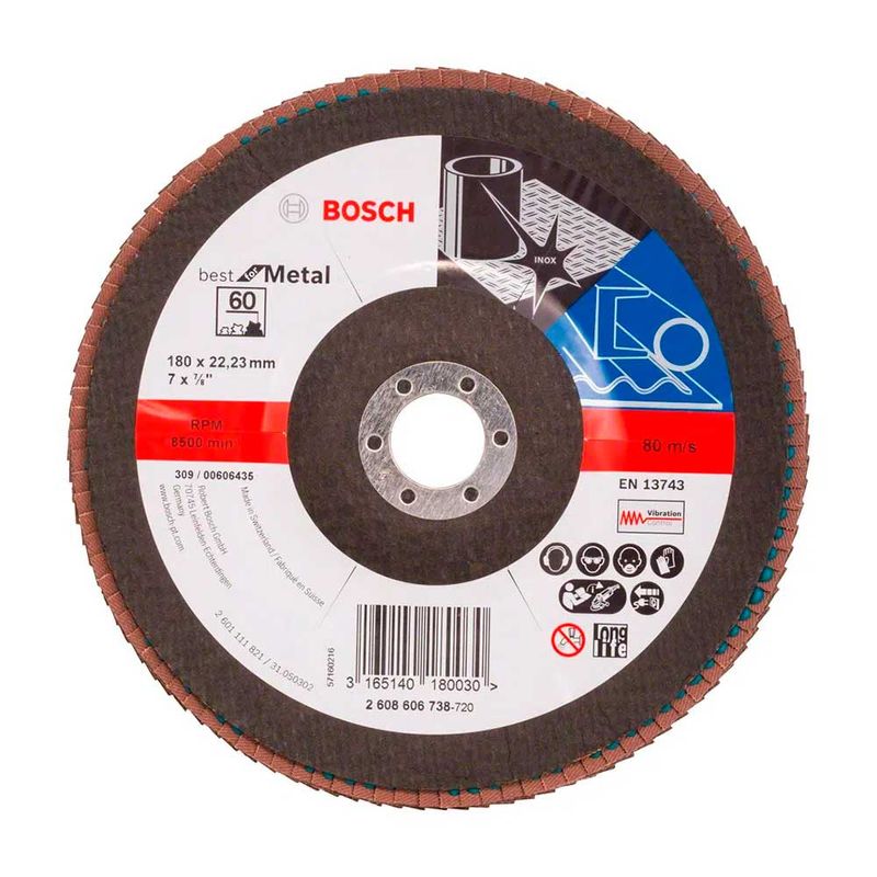 O Disco Lixa Flap-Disc 4.1/2" Bosch 2608607322 é compatível com esmerilhadeiras angulares e possui tempo de vida excelente ao desbastar juntas soldadas e ao lixar de forma rústica superfícies em metal.