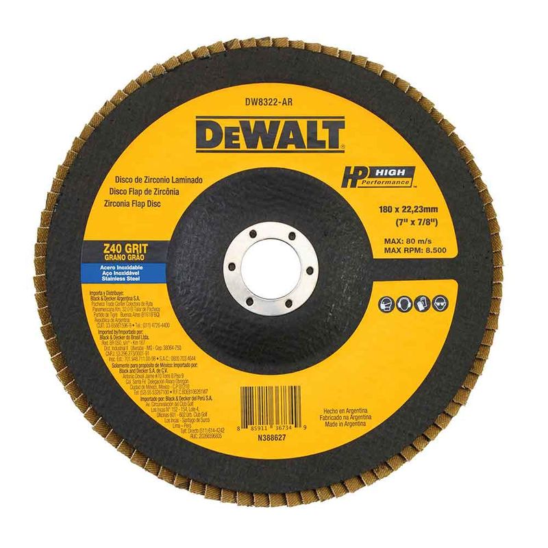 O Disco Lixa Flap Zircônia 7" X 7/8" Dewalt DW8322 #40 foi projetado com grãos zirconados que oferecem o máximo de eficiência nas operações, removendo o material e oferecendo acabamento ao mesmo tempo, eliminando a troca de discos em trabalhos que requerem ambas as operações. Ideal para a remoção e nivelamento em cordões de solda, chanfros, rebarbação, acabamento, limpeza e preparação de superfície para pintura.
