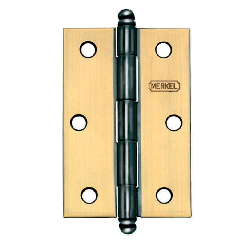 01- Dobradiça Média Pino Reversível Aço Latonado Oxidado Merkel