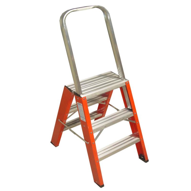 A Escada pintor dupla fibra Alulev FP 504 não conduz eletricidade, são resistentes a corrosão química e possui carga máxima de 110 kg. Compre já a sua!
