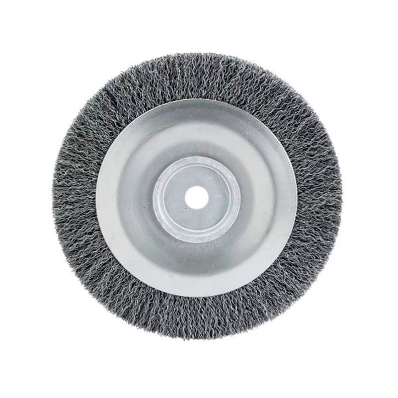Escova Circular Abrasfer 6" x 1" aço inox ondulado utilizada para limpeza de superfície de difícel acesso, limpeza de matriz, moldes, remoção de resíduos, oxidações e revestimentos