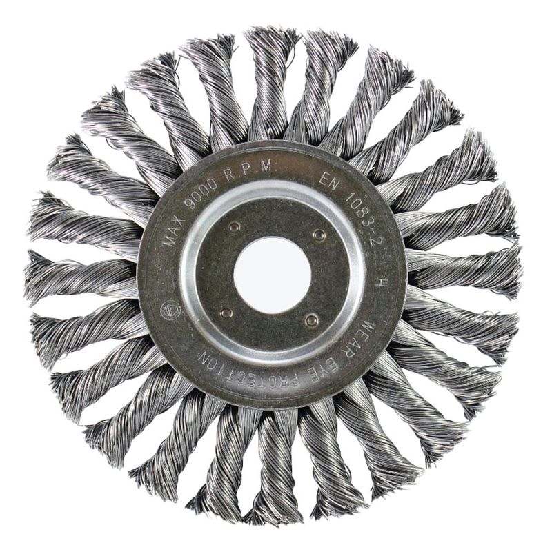 A Escova Circular Trançada Pequi 6" x 1/2" Aço Inox 0,50 mm Linha Standard confere uma maior capacidade de remoção, deixando um acabamento mais rústico, por ser mais agressiva. Ela é ideal para remoção de carepas e respingos de cordão de solda, remoção de rebarbas e limpeza de nível médio, limpeza de bisel e raiz de solda, montagem e manutenção de tubos de pipeline.
