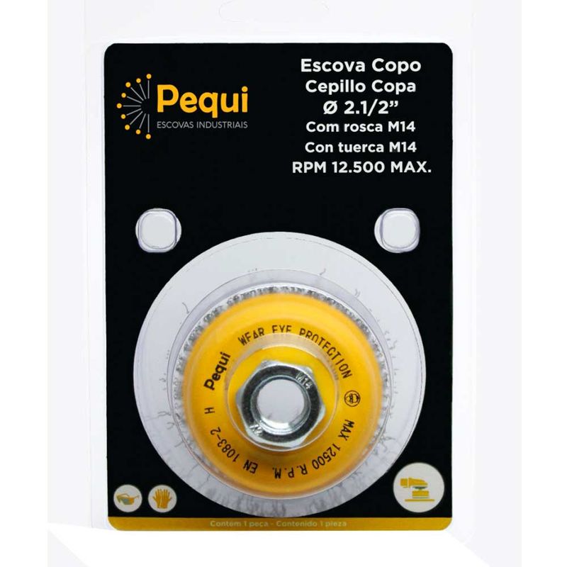 A Escova Copo Ondulado Inox 0,30mm 2.1/2" Pequi M14, graças a sua flexibilidade e abertura das cerdas durante seu acionamento, consegue realizar a limpeza de superfícies planas, fazer a remoção de pinturas e oxidações, realizar rebarbação de nível médio, entre tantas outras aplicações. Com uma ampla abrangência de utilização, é ideal para montagem em esmerilhadeiras angulares, e é fornecida com rosca M14.