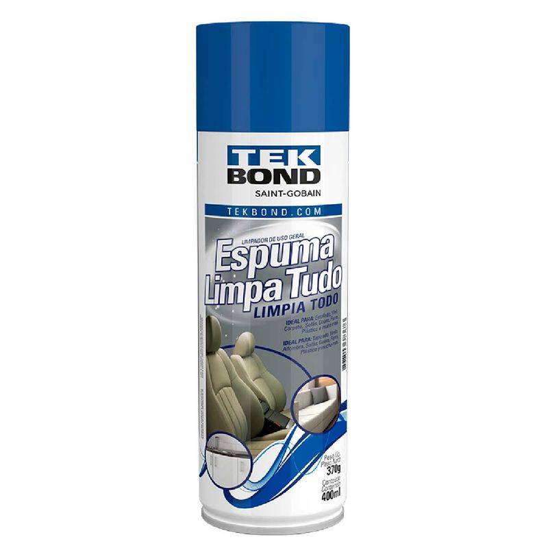A Espuma Limpa Tudo Tekbond é ideal para limpar a seco as mais diversas superfícies. Pode ser usado em móveis, objetos difíceis de desmontar, sofás, poltronas, assentos de carro, paredes, fórmicas, plásticos e vinis.