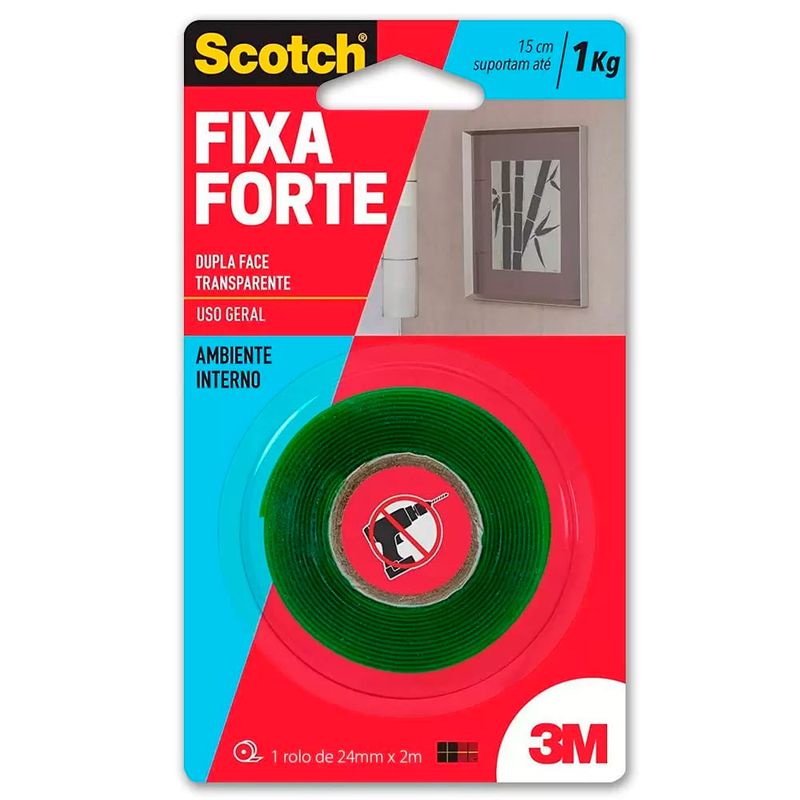 A Fita Dupla Face 3M Scotch® Fixa Forte proporciona fixação permanente de qualidade profissional com pouca quantidade de fita. Sua aplicação limpa e sem barulho dispensa o uso de pregos e parafusos. É perfeita para fixação de objetos pesados em qualquer superfície lisa, como paredes, acrílicos, vidros, plásticos, metais, madeiras com verniz ou pintadas e revestimentos (que não recebam umidade), em ambientes internos. Resiste às variações de temperatura e clima. Não amarela com o passar do tempo.