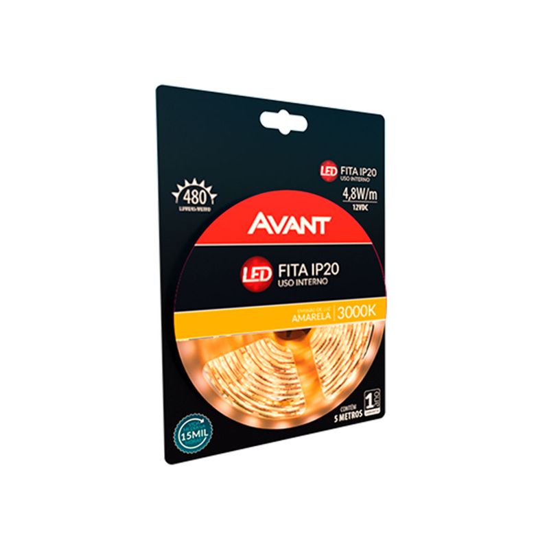 01- Fita Led Interna 8mm 4,8W/M Avant 3000K com Fonte Bivolt