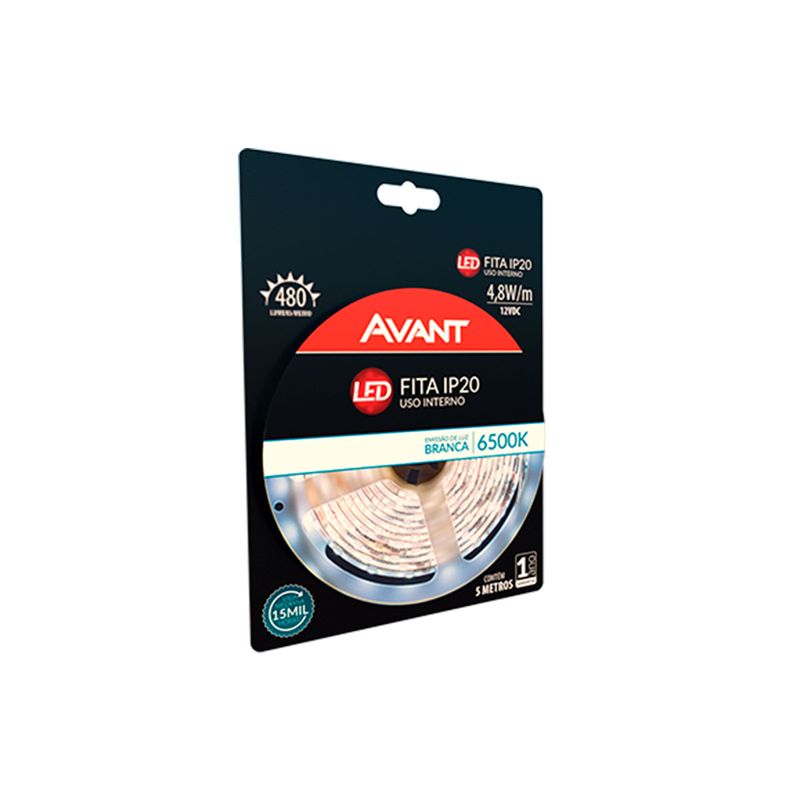 01- Fita Led Interna 8mm 5M 4 8W/m Avant 6500K com Fonte Bivolt
