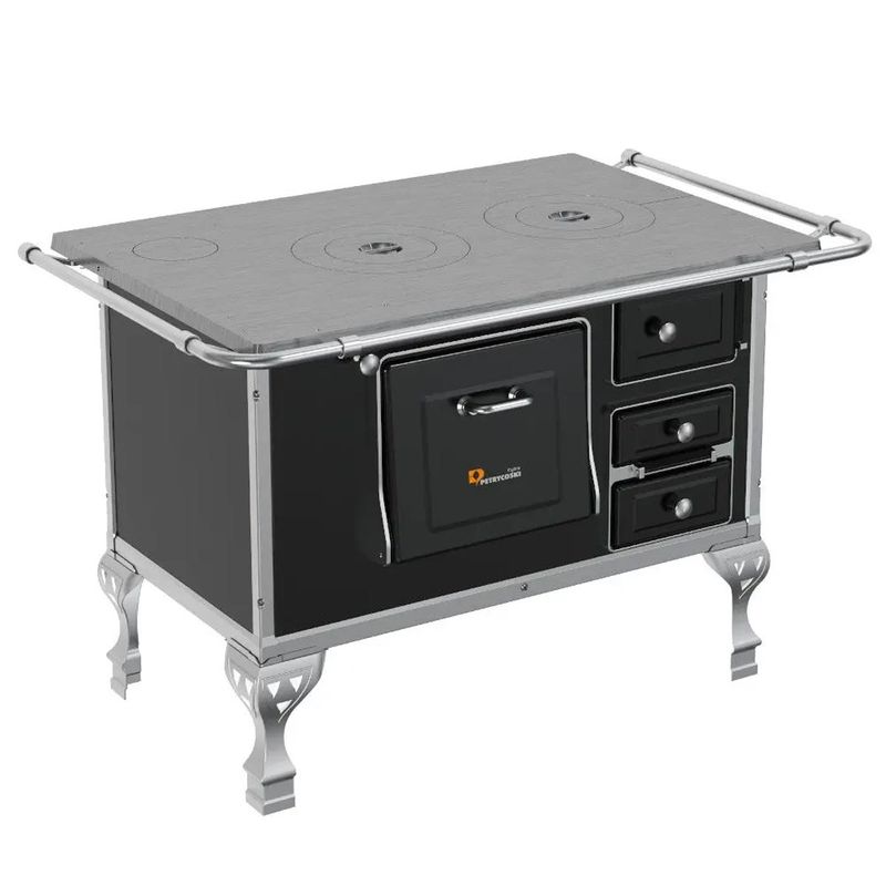O Fogão à Lenha N°2 Petrycoski Preto Esquerdo é uma opção robusta e funcional para quem busca eficiência no aquecimento e preparo de alimentos. Com saída de chaminé posicionada à esquerda, este modelo é ideal para otimizar o espaço e a circulação de ar na sua cozinha. Sua chapa de ferro fundido polida e os puxadores em aço inox conferem durabilidade e estilo. Perfeito para ambientes rústicos ou modernos, ele combina tradição e praticidade.
