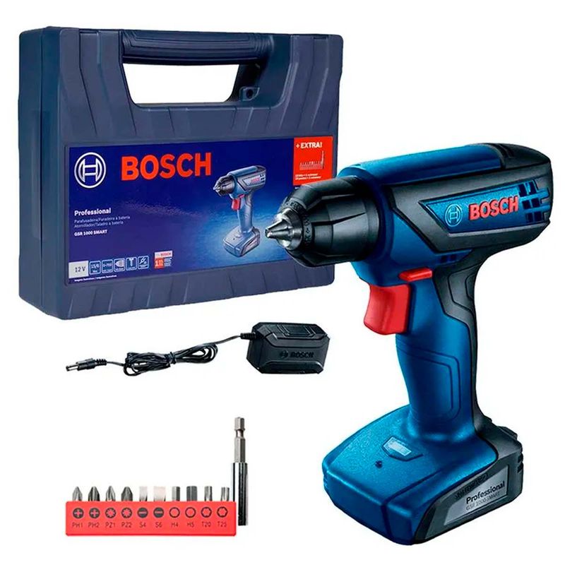 A Furadeira/Parafusadeira Bosch GSR 1000 é uma ferramenta compacta e leve, pesando apenas 0,9 kg, ideal para trabalhos em locais de difícil acesso. Equipada com bateria de 12V e 1,5Ah, oferece autonomia para até 600 parafusamentos por carga. Possui torque máximo de 15 Nm, rotação de até 700 rpm e mandril de 1/4" com aperto rápido. Conta com luz de LED integrada e indicador de carga da bateria, proporcionando praticidade e eficiência no uso.