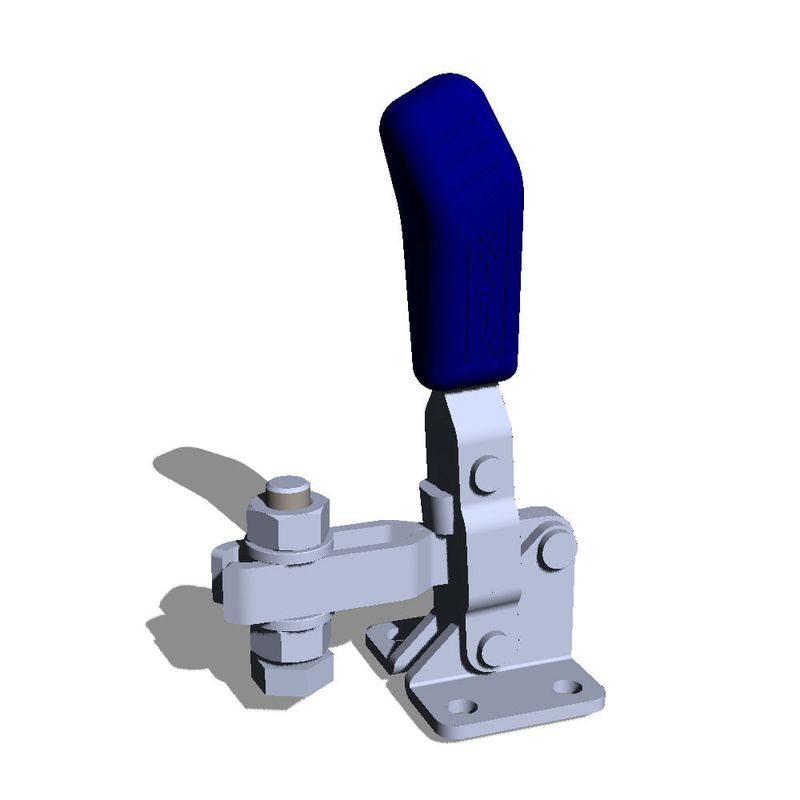 O Grampo Vertical Kifix KF-010 DB 32kgf, de fixação rápida, conta com um mecanismo que consiste em uma articulação de três pontos conhecida como “ação de joelho ou cotovelo”, a qual gera uma força de retenção contrária ao esforço aplicado e que só se destrava se acionado.