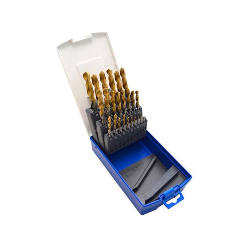 Jogo de Brocas DIN 338N Lenox/Twill 1 a 13mm com 25 peças R eferência: 14900 / TB14900 Jogo De Brocas Em Aço Rápido 1 a 13mm 25 Peças Revestida em Titânio TW1000 Lenox Twill Especificações Técnicas Jogo composto por brocas no tamanho: 1.0 - 1.5 - 2.0 - 2.5 - 3.0 - 3.5 - 4.0 - 4.5 - 5.0 - 5.5 – 6.0 - 6.5 - 7.0 - 7.5 - 8.0 - 8.5 - 9.0 - 9.5 - 10.0 - 10.5 - 11.0 - 11.5 - 12.0 - 12.5 - 13.0mm
