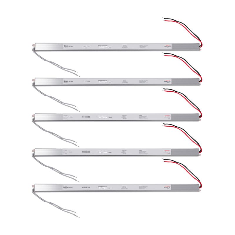Kit 5 Fontes Driver Slim para Fita LED 12V 6A 72W Nordecor 5 Unidades