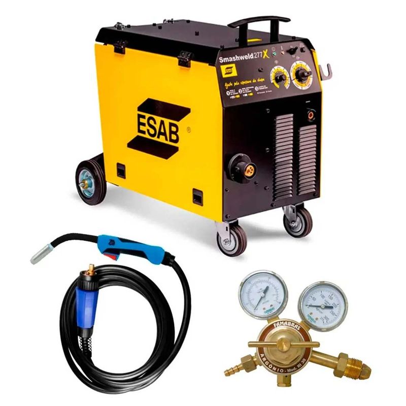Kit Máquina de Solda MIG/MAG 277X Esab + Tocha TBI + Regulador de Pressão Famabras 220/380V