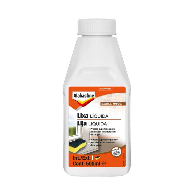 A Lixa Líquida Alabastine Incolor é um preparador de superfícies que substitui a lixa convencional na hora de remover o brilho das superfícies como madeira e metal. Prepara a superfície para pintura em instantes, sem deixar residuos como pó.