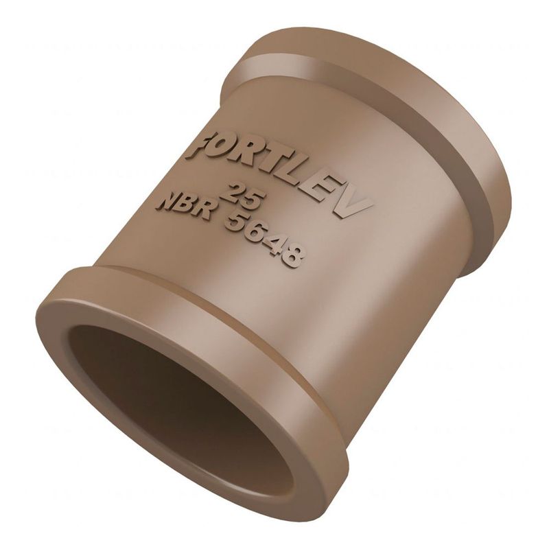 A Luva Soldável PVC Fortlev NBR 5648 Marrom interliga os tubos soldáveis de água fria. Fabricada em PVC na cor marrom, suporta até 7,5Kgf/cm² ou 75 m.c.a. à temperatura de 20°C. Compõe o Sistema Predial de Água Fria Fortlev que apresenta um conjunto de tubulações e conexões, cuidadosamente desenvolvidas conforme norma ABNT NBR 5648, para conduzir água potável à temperatura ambiente até os pontos de utilização.