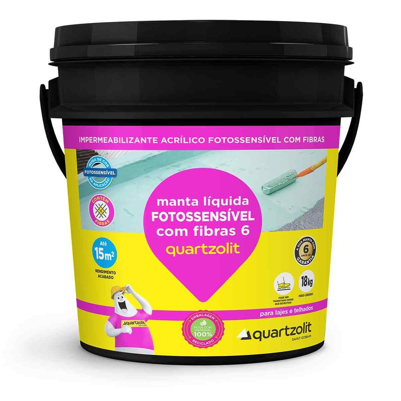 A Manta Líquida Fotossensível com Fibras 6 Quartzolit Branco é um impermeabilizante de alta resistência, ideal para proteção de telhados, lajes e áreas externas. Sua formulação com fibras aumenta a durabilidade, enquanto a característica fotossensível permite aplicação em diversas condições. Com acabamento branco, oferece uma barreira eficaz contra infiltrações e mantém a superfície protegida.