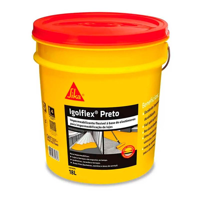 Manta Líquida Impermeabilizante Asfáltica Igolflex 18L Sika é ideal para proteger áreas sujeitas à umidade, como lajes, telhados e fundações. Sua base asfáltica forma uma película contínua, sem emendas, garantindo excelente resistência à água. Fácil de aplicar com broxa, vassoura ou rolo, oferece excelente aderência em superfícies de concreto e alvenaria. Produto pronto para uso, sem necessidade de diluição. Uma solução prática e eficiente para evitar infiltrações com alto desempenho.