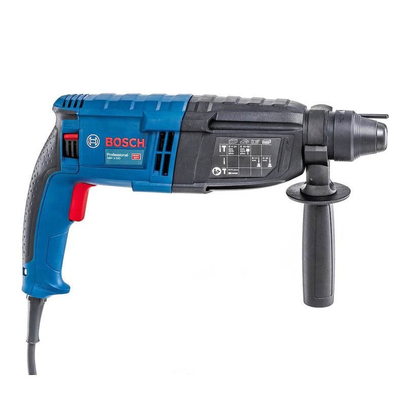 O Martelete Perfurador Rompedor 1/2" Bosch GBH 2-24 D 820W com Maleta oferece muita produtividade aos profissionais, em perfurações com e sem impacto e cinzelamentos. Possui interruptor eletrônico, ideal para instalações das mais variadas e sistema de encaixe SDS-Plus para trocas rápidas de acessórios. Indicado para pedreiros, instaladores de móveis, de cortinas, empreiteiros, eletricistas, encanadores, instaladores de ar condicionado, instaladores de tela de proteção, portões.