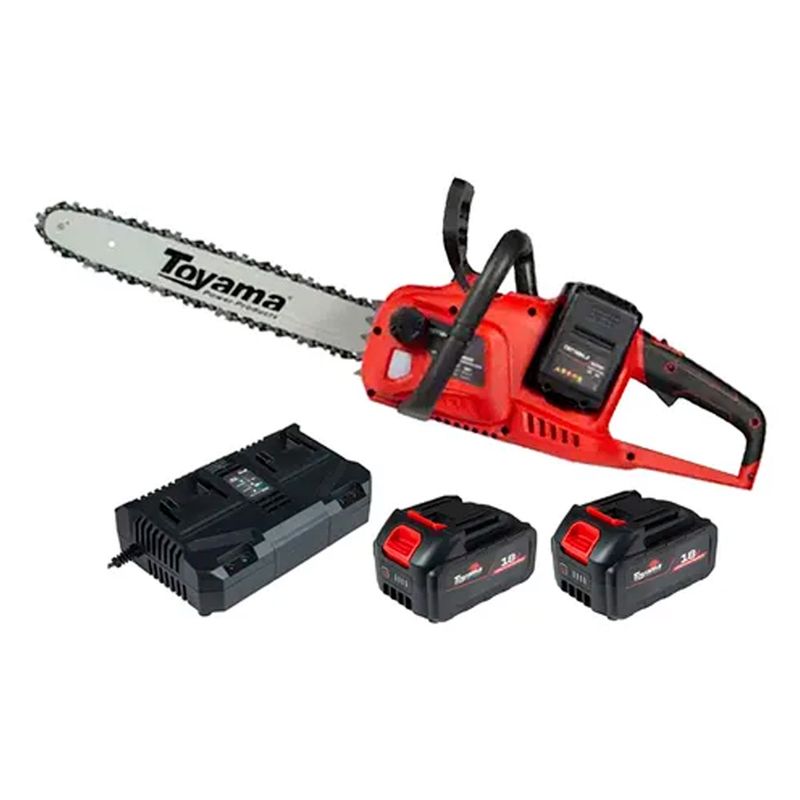 A Motosserra a Bateria Toyama TBT18+18RCS16-K com motor Brushless é ideal para podas e cortes de galhos de até 30 cm de diâmetro. Equipada com motor brushless de alta eficiência e sabre de 16" (40 cm), oferece desempenho robusto com baixo nível de ruído. Possui sistema de lubrificação automática da corrente e ajuste de tensão sem necessidade de ferramentas, garantindo praticidade e segurança no uso. O kit acompanha duas baterias de 18V 4Ah e carregador duplo de 2,5A, compatíveis com outros equipamentos da linha ONE ALL BATTERY da Toyama.