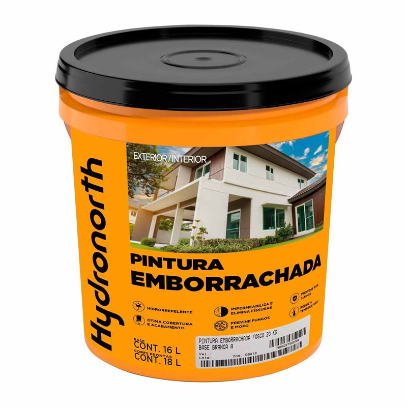 Pintura Emborrachada Branca Fosca Hydronorth 20 kg é uma tinta premium à base de resinas acrílicas e elastoméricas, ideal para impermeabilizar fachadas, muros, telhas e lajes. Forma uma membrana flexível que acompanha movimentos do substrato, prevenindo fissuras e microtrincas. Sua cor branca ajuda a refletir o calor, reduzindo a temperatura interna entre 1 °C e 5 °C em ambientes de 20–35 °C. Alto poder hidrorrepelente e resistência a chuva intensa dão longa durabilidade e proteção contra mofo.