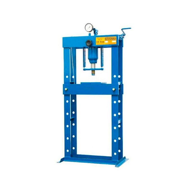 A Prensa Hidráulica Bovenau P15000 possui válvula de sobrecarga, pistão com retorno automático.