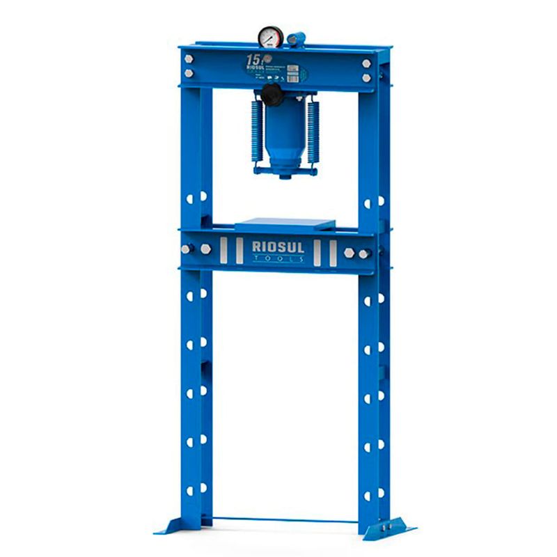A Prensa Hidráulica Desmontável Riosul Tools 15 Toneladas R070025 pode ser usada em indústrias, oficinas mecânicas, lojas de reparação e manutenção. É ideal para trabalho com metais. Possui válvula de sobrecarga, pistão com retorno por mola e mesa de trabalho com altura ajustável.
