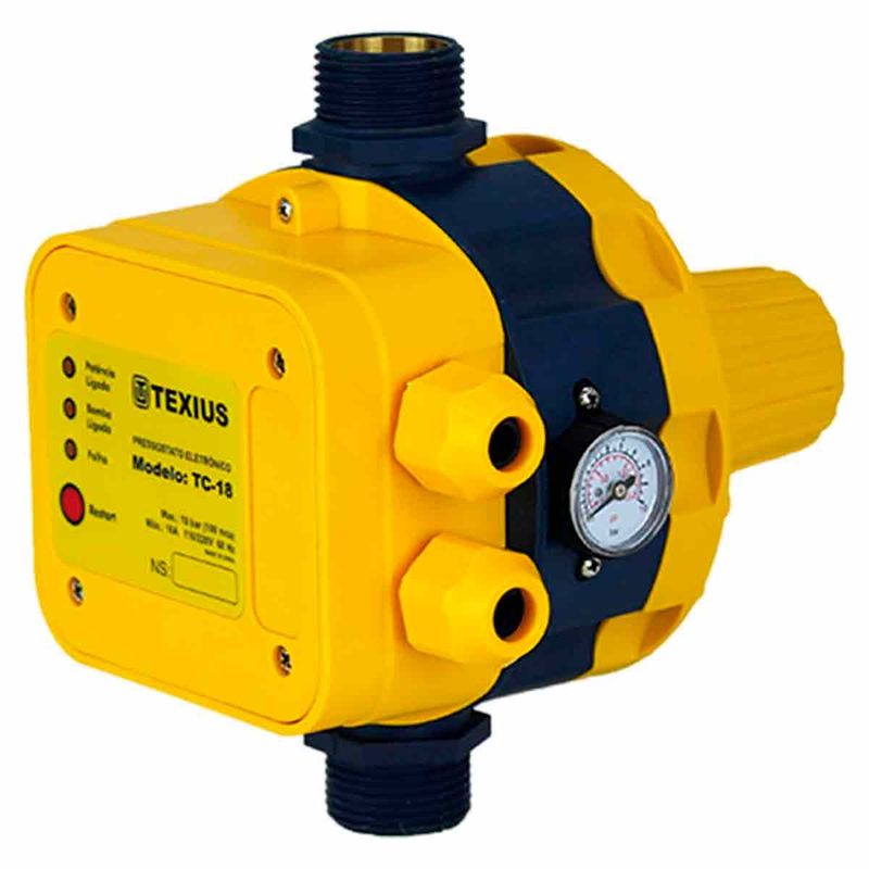 O Pressostato TC-18 Monofásico Texius é a solução ideal para controle automático de bombas em sistemas de pressurização. Compatível com redes 110/220V, atua no acionamento da bomba conforme a variação da pressão, garantindo segurança e eficiência no fornecimento de água. Fácil de instalar, é indicado para residências, comércios e pequenos sistemas industriais.