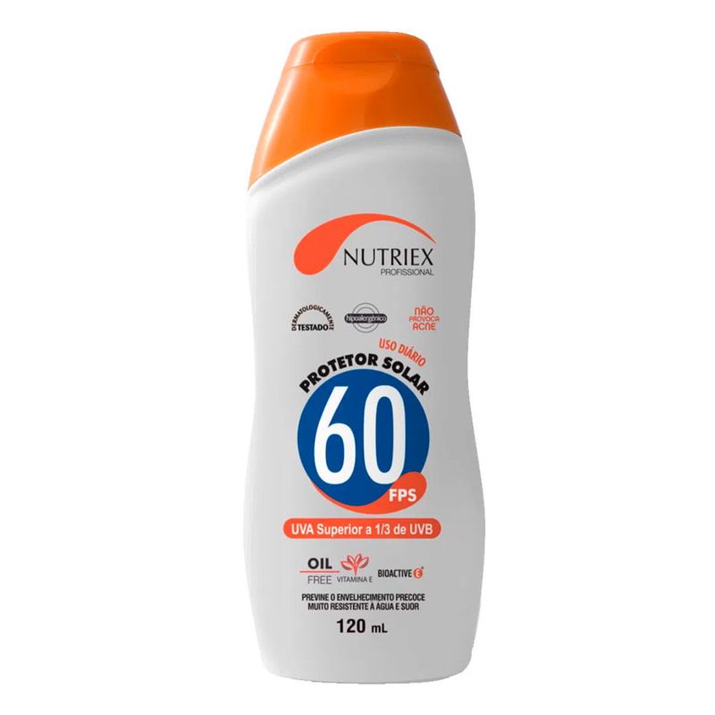 O Protetor Solar FPS 60 Nutriex Profissional é indicado para o uso diário, pois além de proteger contra os raios UVA e UVB, em sua composição, possui vitamina E, uma grande aliada da prevenção contra o envelhecimento precoce da pele. Altamente resistente à água e ao suor, o creme protetor pode ser espalhado com facilidade e a pele não fica esbranquiçada, devido à rápida absorção.