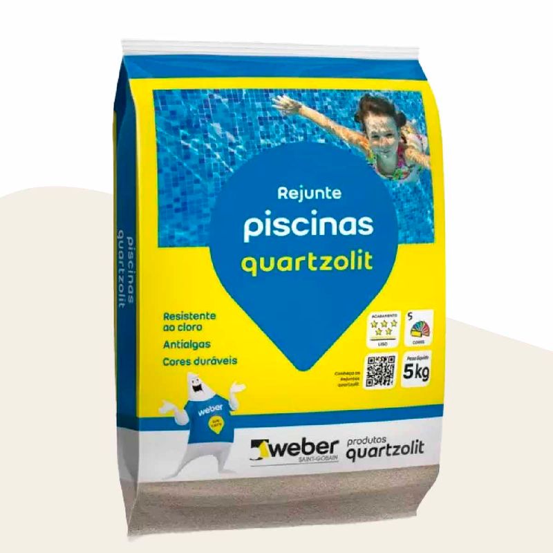 O Rejunte Piscina Quartzolit Branco é um rejunte cimentício colorido resistente ao cloro, antialgas, antimofo e de acabamento liso. É indicado para uso submerso em água tratada quimicamente em locais como piscinas, saunas, espelhos d’água, fontes e tanques. Contém biocida e algicida para evitar formação de fungos e algas.